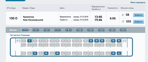 За 5 часов до отправления имеется почти 400 свободных мест из Кременчуга в Киев на поезд №150 «Кременчуг - Ворохта». Ежедневно этот поезд «возит воздух».