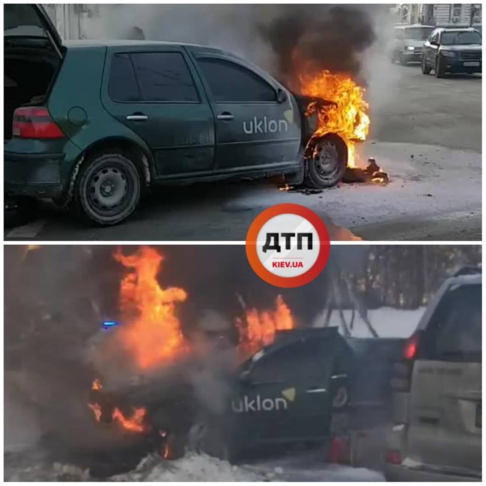 В центре Киева из-за ДТП сгорел автомобиль такси