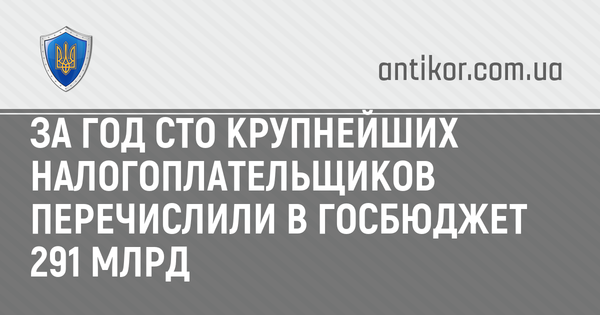 В 2018 году 100 крупнейших налогоплательщиков увеличили отчисления в сводный государственный бюджет на 14% до 291,7 млрд грн.