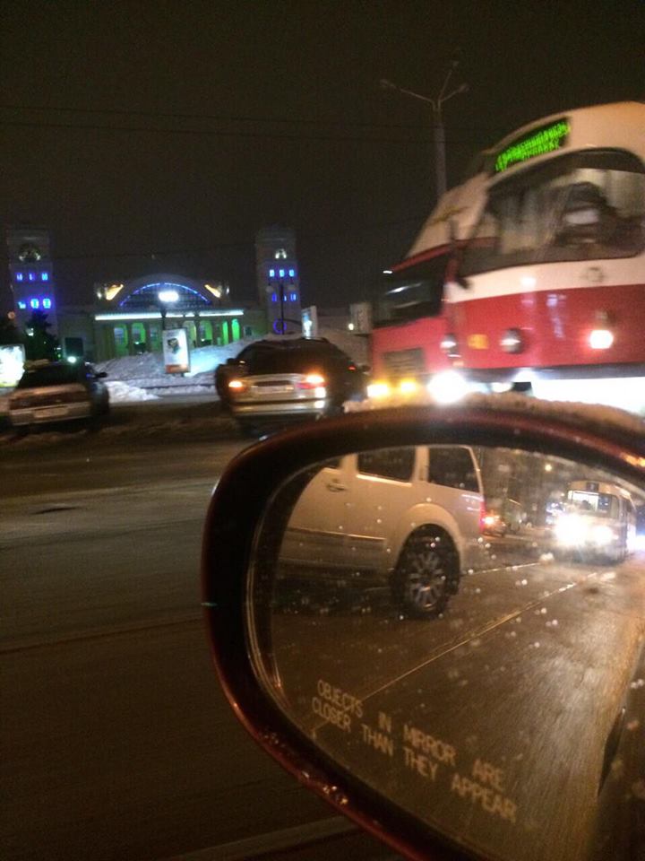 На Южном вокзале восемь трамваев не могут продолжить движение. Напротив харьковского Южного вокзала столкнулись DAEWOO Lanos и Nissan Patrol.