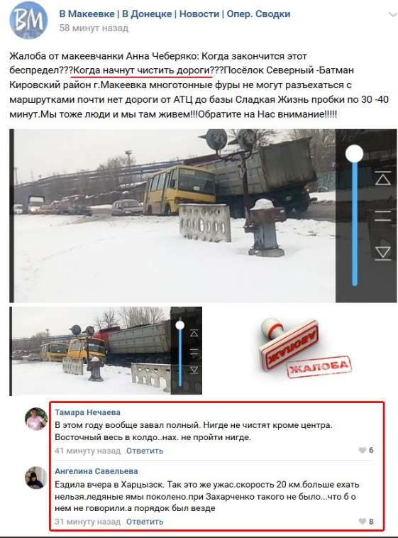 "Держитесь, люди, скоро лето", - подписал он скриншоты жалоб макеевчан, вместе со снимками "проблемных участков".