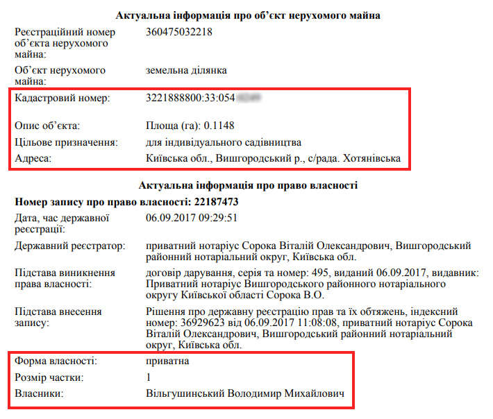 На додачу до квартир і паркомісць, є у сина Володимир й сім земельних ділянок у Хотянівці під Києвом. Чотири ділянки він сам придбав, а три – подаровані матір’ю судді.