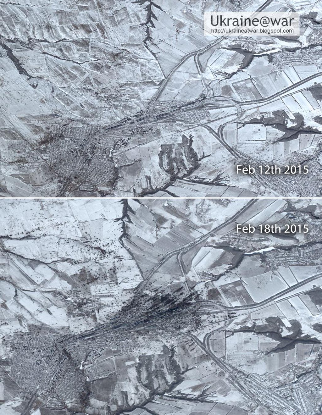 Дебальцево со спутника до и после перемирия