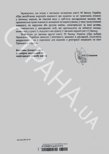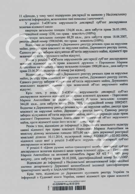 В частности, у Департамента мониторинга деклараций возникли претензии касательно пунктов "Объекты недвижимости", "Транспортные средства", "Корпоративные права", "Юридические лица, конечным бенефициаром которых является субъект или члены его семьи", "Доходы, в том числе подарки".