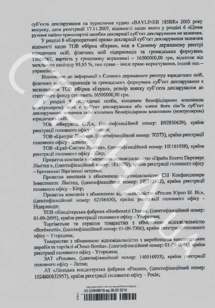 При этом действующий президент не задекларировал туристическое судно 2005 года выпуска, которое, как следует из Судовой книги Украины, у него как раз есть. Также в Государственном земельном кадастре значится 1875-метровый земельный участок, оформленный вновь на супругу Марину Порошенко. Он также не отображен в декларации.