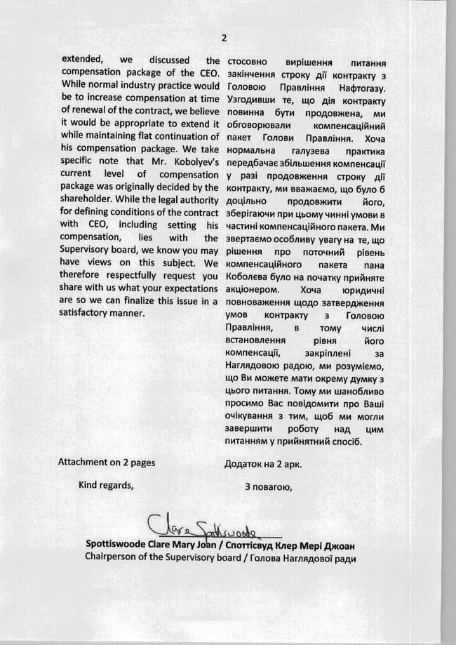 Об этом говорится в письме главы набсовета «Нафтогаза» Клэр Споттисвуд в адрес премьера Владимира Гройсмана, сообщает Цензор.НЕТ.