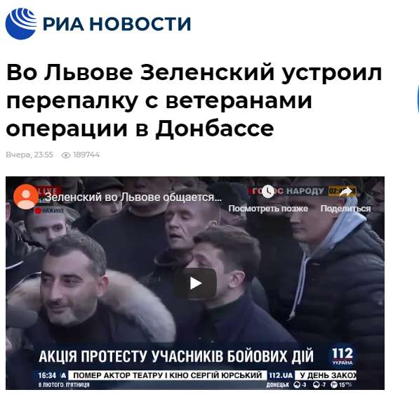 Все топовые издания прокремлевского пула растриражировали данное заявление, выставив его совсем в ином контексте. В частности, ставка сделана на то, что Зеленский якобы повздорил с ветеранами АТО на Донбассе.