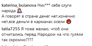 «Пир посреди чумы», «Ну хоть не так открыто бы делал, б…ть. Вообще ох…ели, с..ки», «Твари ненасытные обворовали всю страну и жируют», «Твари когда вас уже всех посадят за воровство! Враги народа!», «Мерзко!», «Ну, что скажешь, надо ещё пенсионный возраст поднять, в то на следующий юбилей не хватит», — писали возмущенные пользователи.