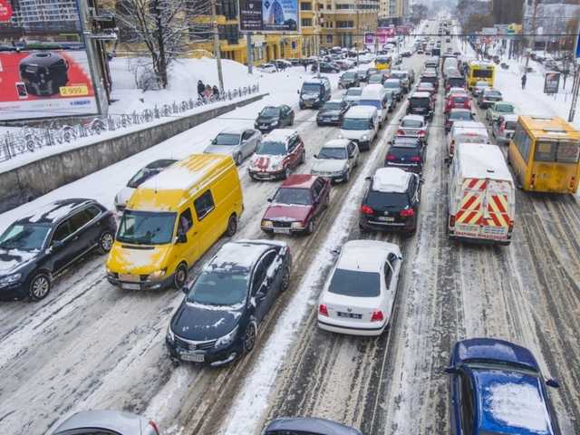 Утром 14 февраля в Киеве за час произошло 14 ДТП, уровень пробок достиг 7 баллов.
