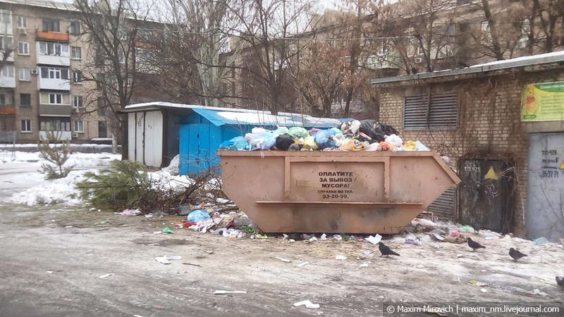 Несколько слов о том, кто всё это снимал. Фотографии были сделаны зимой 2018 года по моему заказу моими знакомыми из Луганска. Фотографировать было крайне небезопасно — местная «МГБ» работает по принципам НКВД и отправляет каждого подозрительного «на подвал» как «украинского шпиона и диверсанта». Для того, чтобы тебя объявили диверсантом — достаточно просто сфотографировать мусорку на виду у доносчика. В этом отношении законы в «ЛНР» намного строже, чем в «ДНР» — Луганск живёт беднее Донецка, и местная власть орков там намного голоднее и злее.
