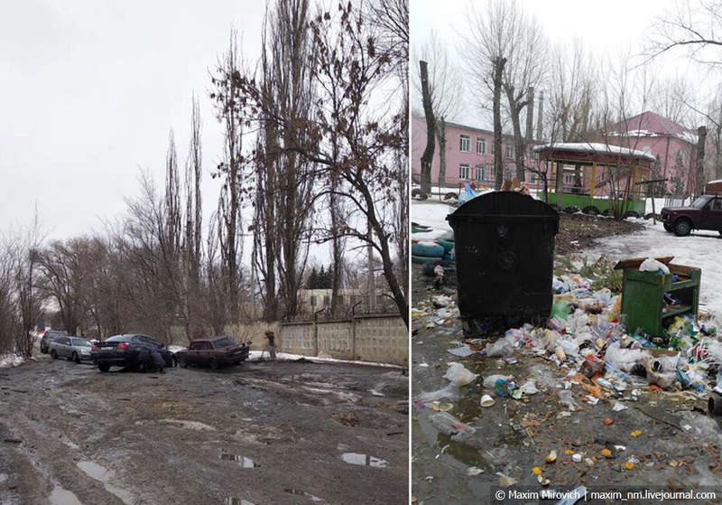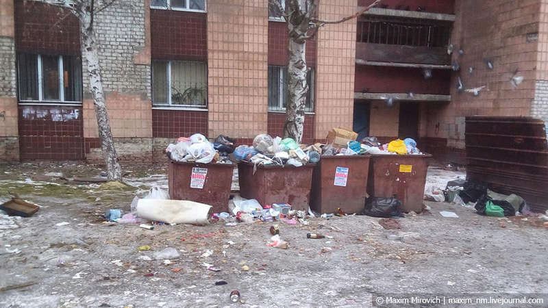 А теперь давайте посмотрим, как это всё выглядит в реальности. Мусор в Луганске перестал вывозиться уже достаточно давно, и дворы в городе выглядят как-то так. Луганчане кричали «Россия, приди!», и вот она пришла — правда, не в виде Москвы из телевизора, а Омска из действительности.