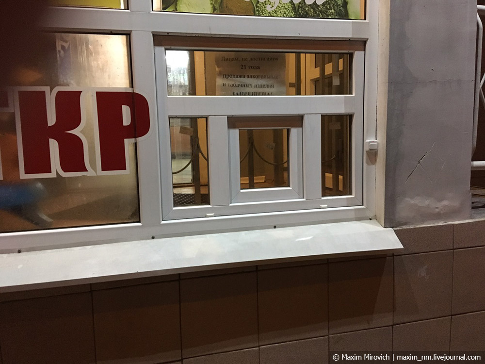 Окно «наливайки» выглядит вот так, внутрь можно не заходить. Подходите к окошку, суёте деньги — и получаете свою дозу спиртного.