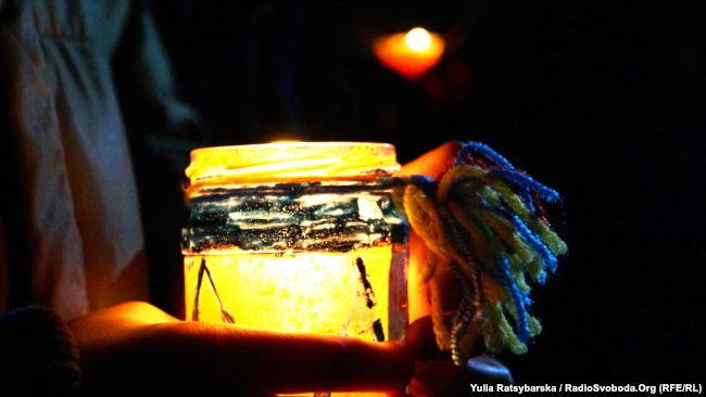 Учасники акції – громадські активісти, волонтери, священики, рідні загиблих на Донбасі бійців – засвітили лампадки та свічки.