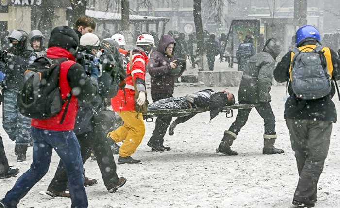 Эвакуируют раненого Романа Котляревского. Фото: Майдан 18-20 февраля. Как все было.