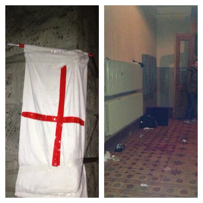 А потом еще вынес простыню. Мы красным скотчем сделали на ней крест и вывесили ее, как флаг.