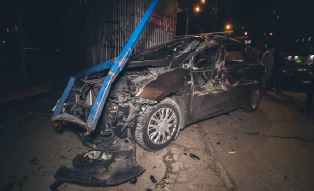 В Киеве легковушка влетела в остановку общественного транспорта после того, как на скорости столкнулся с маршруткой. Это произошло на пересечении проспекта Науки и Стратегического шоссе, что в Голосеевском районе.