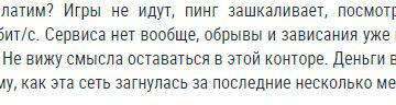 “Не рекомендую, швидкість занижують а вечером та на вихідні майже пропадає. На новорічні свята мобільний інтернет був швидший за домашній.А про службу підтримки зовсім довга історія”, “Інтернет ледь повзе. Грошей ця контора від мене більше ніколи не отримає”, “Стабільно “лягає” інтернет. Не рекомендує цього інтернет-провайдера”, – пишуть користувачі.