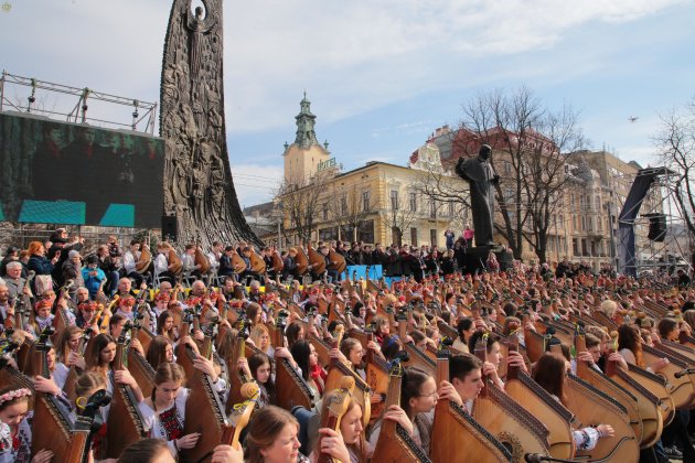 Сьогодні у Львові встановлено національний рекорд – наймасовіше виконання творів Тараса Шевченка. 407 бандуристів із понад 30 колективів Львівщини і Львова на площі перед пам’ятником Кобзарю разом із хористами заспівали «Заповіт» і «Реве та стогне…» на слова Тараса Шевченка.