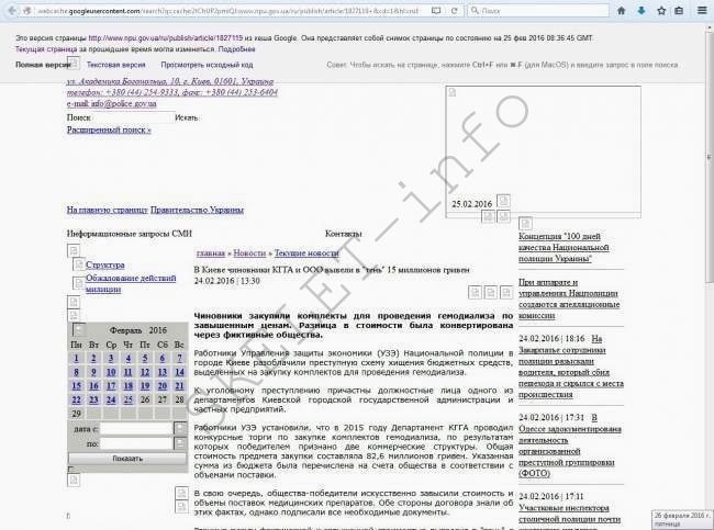 Новый скандал произошел в феврале 2016-го: на сайте Нацполиции появилась новость о том, что Управление защиты экономики раскрыло коррупционную схему с участием чиновников КГГА, которые разворовывали бюджетные средства, выделявшиеся на программу гемодиализа, путем завышения стоимости закупаемого оборудования и материалов. Правда, при этом не упоминались ни фирмы, делавшие эти поставки, ни имена их владельцев. Более того, в течении суток эта новость вообще исчезла с сайта Нацполиции – однако она была сохранена в кэше Google, да и её успели перепечатать ряд новостных сайтов. Делу снова не дали ход, и стало очевидным, что у Фисталей и их бизнес-партнеров из КГГА имеется очень мощная «крыша».