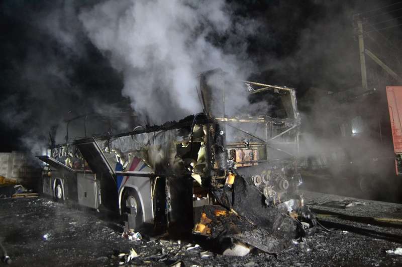 В ночь на 15 марта в Ровно дотла сгорел двухэтажный пассажирский автобус, на момент ликвидации огня от него фактически ничего не осталось.
