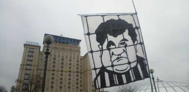 На Майдан принесли заґратованого Порошенка