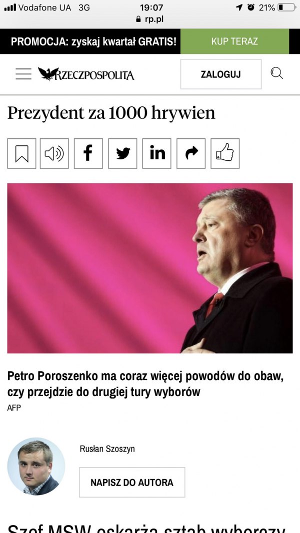 Польська "Річ Посполита" пише статтю про "Президента за 1000 гривень", корупційні скандали щодо "сіток" та штабів Порошенка, які роздають бюджетні кошти за голос і продовжує: "на цьому фоні тривають подальші корупційні скандали в оборонці".
