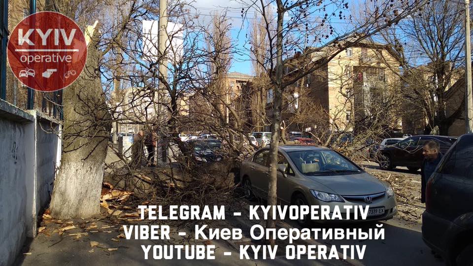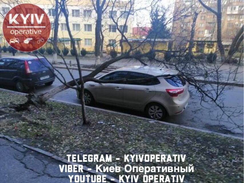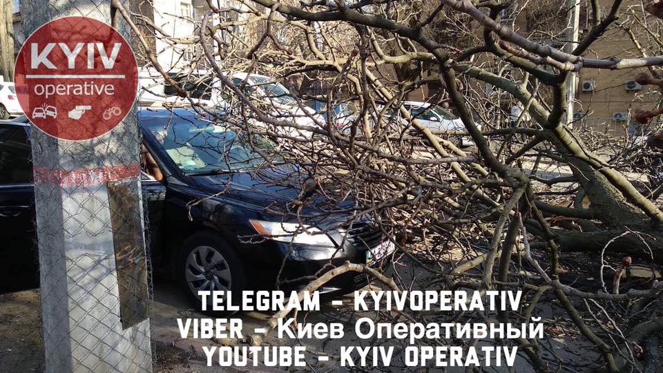 "Внимание! В Киеве и области вновь поднялся ветер. Будьте внимательны, не оставляйте свои авто под деревьями, чтобы не было как на фото", - говорится в сообщении сообщества.