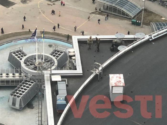 Людей в камуфляжній формі, озброєних снайперськими гвинтівками, помітили на дахах двох будівель у центрі столиці.