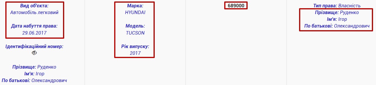 У 2017 році Ігор Руденко став власником новенького автомобіля HYUNDAI TUCSON. Обійшлося це авто колишньому прокурору у 689 тис. грн.