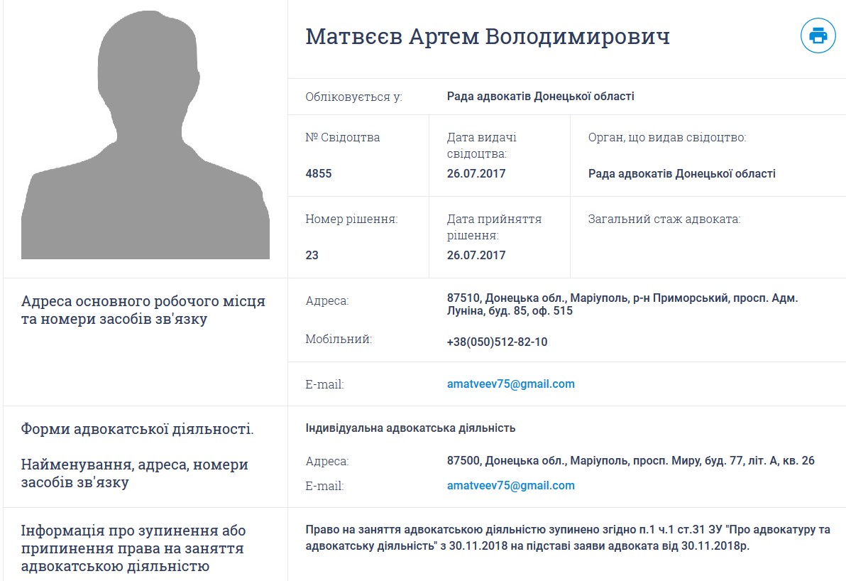 Починаючи з 2017 року, Артем Володимирович розпочав займатися індивідуальною адвокатською діяльністю.
