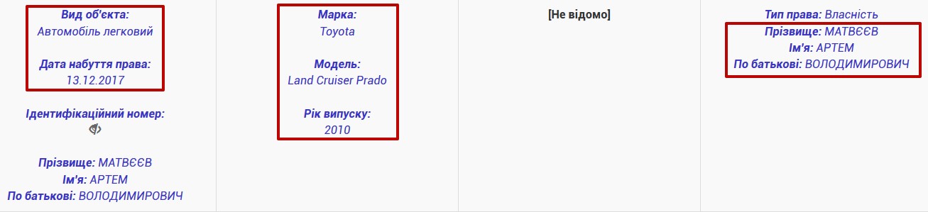 У тому ж 2017 році Артем Матвєєв задекларував автомобіль Toyota Land Cruiser Prado 2010 р. в.Вартості цього авто очільник краматорського ДБР теж не знає.