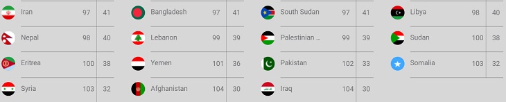 Так, Украина в рейтинге оказалась на условном 40-м месте в одной компании с такими странами как Никарагуа и Тувалу.