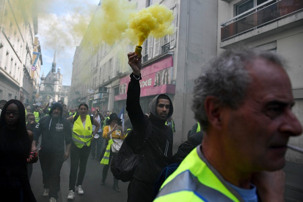 Полиция применила в субботу слезоточивый газ и эвакуировала пострадавшего "желтого жилета".