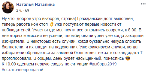 На своих страницах в соцсетях украинцы выкладывают посты, посвященные выборам президента: селфи у избирательных участках или просто свои размышления. Все это пользователи сопровождают хэштегом "остаточнепрощавай", указывая на то, что после выборов власть в Украине сменится, а значит, подходят последние дни президентства Петра Порошенко.