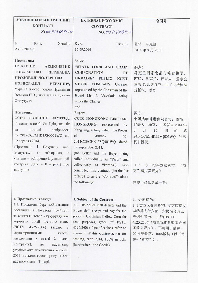 В распоряжении нашего издания имеется контракт, подписанный Валерием Томиленко с компанией — посредником “Noble Resources SA” — в документе, собственно, и идет речь о покупке 55 тыс. тонн кукурузы для выполнения внешнеэкономического контракта с китайской государственной корпорацией ССЕС. Занимательный факт: соучредителем украинского представительства которой (ООО “Нобл Ресорсиз Украина”) является народный депутат Украины Иван Мирошниченко.
