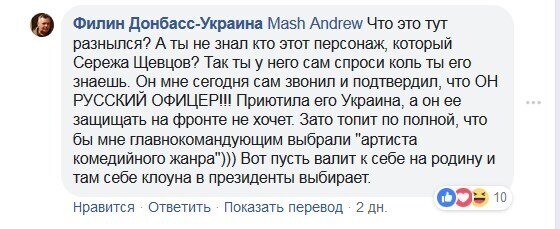 Кроме того, Шевцов оставил комментарий под записью комбата, потребовав доказать его причастность к войскам РФ.