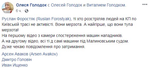 В свою очередь в комментариях указывают, что пострадал минимум один человек, ему делают операцию. Кроме того, появились фото и видео с места происшествия. Одна из комментирующих утверждает, что на кадрах видны авто нападающих, которые позже были замечены возле здания Малиновского суда в Одессе. Олеся Голодок добавила, что в момент разборок, сотрудники патрульной полиции ничего не делали, а просто наблюдали со стороны.