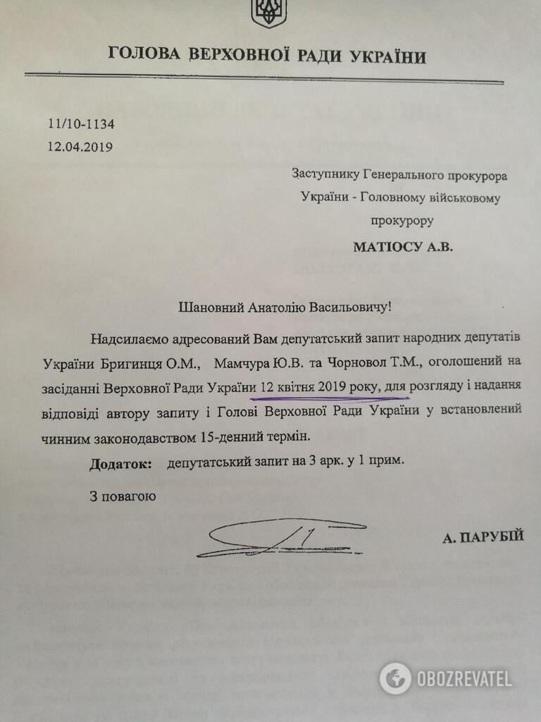 Соответствующий документ, оказавшийся в распоряжении OBOZREVATEL, был направлен заместителю генерального прокурора – главному военному прокурору Украины Анатолию Матиосу.