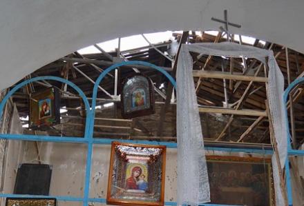 Он отметил, что вокруг церкви много воронок от обстрелов, «а некоторые снаряды попали прямо в здание, пробили крышу и взорвались внутри».
