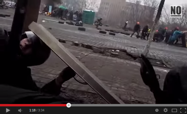 1:35 Ребята, на баррикацию (?) — справа от украинского отеля… “Украина”