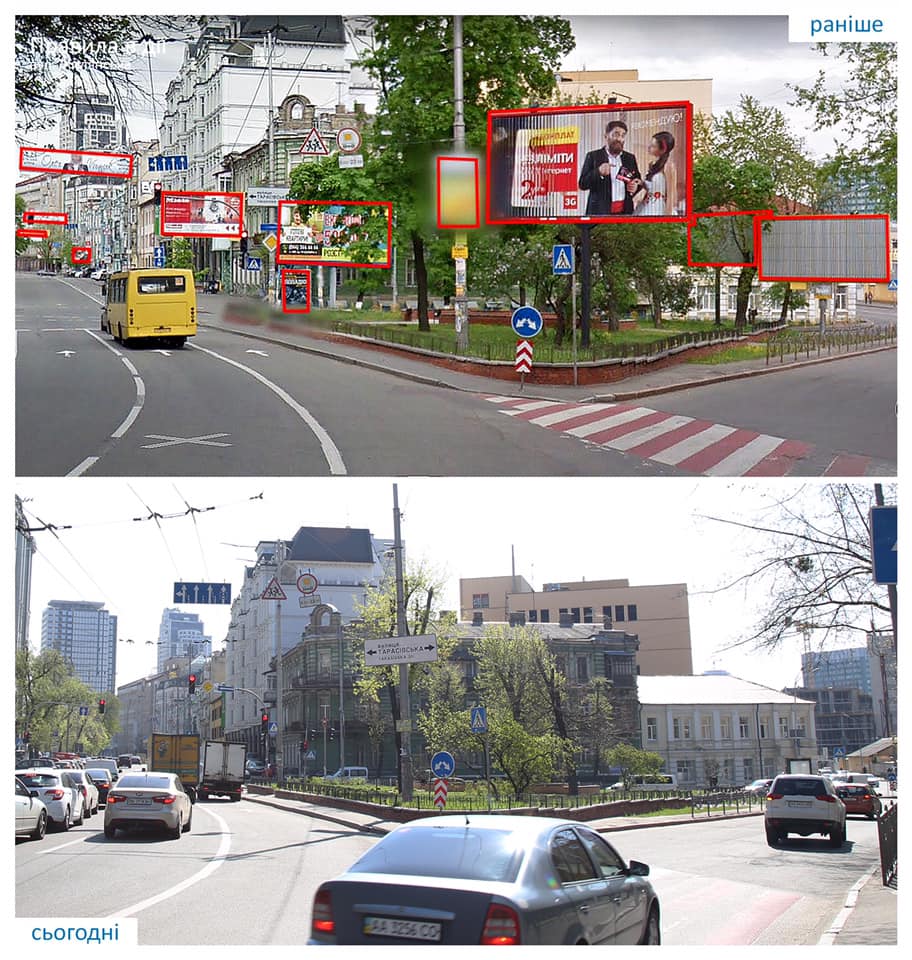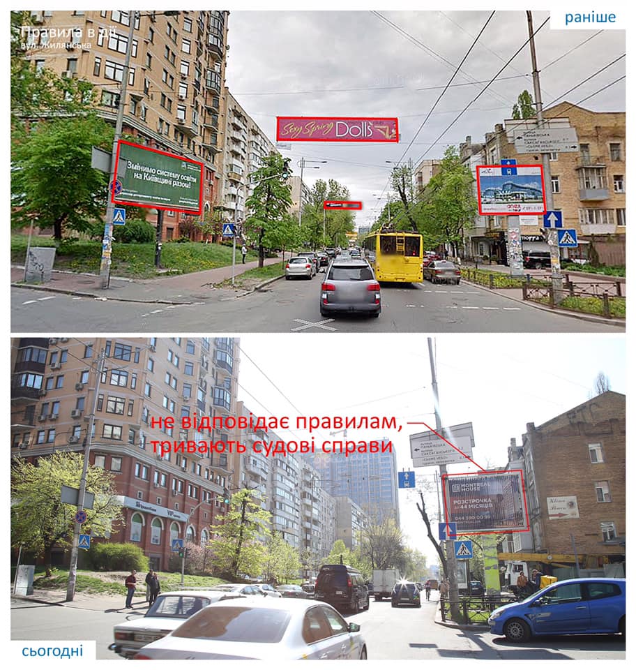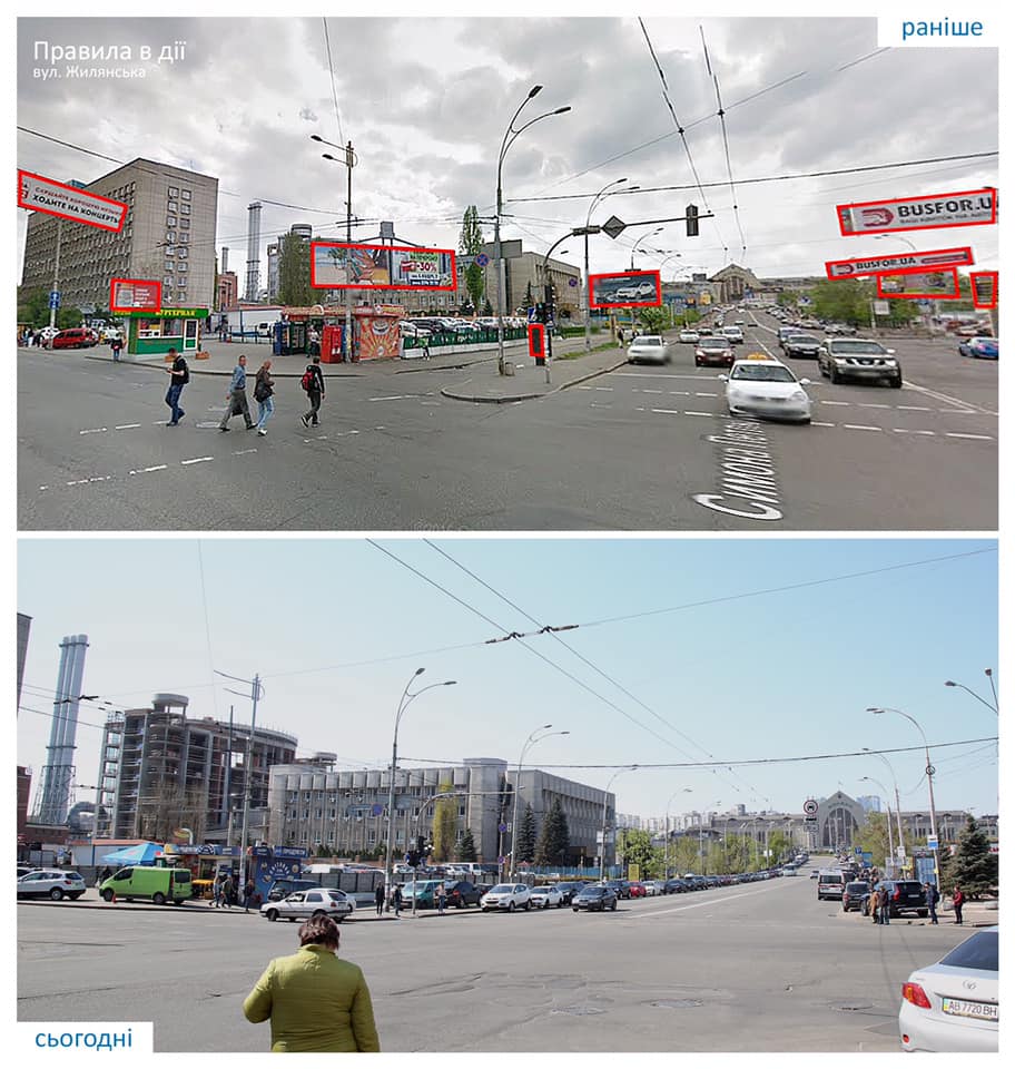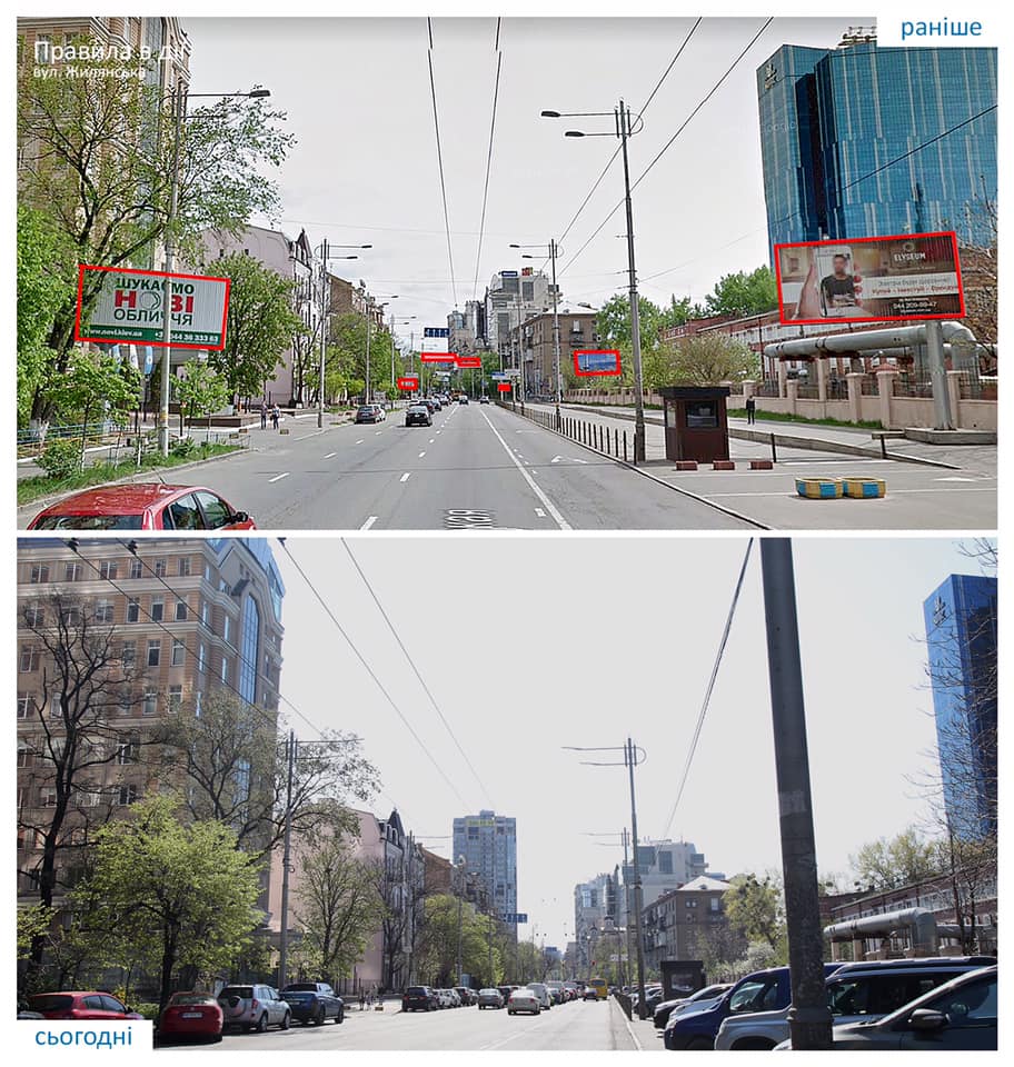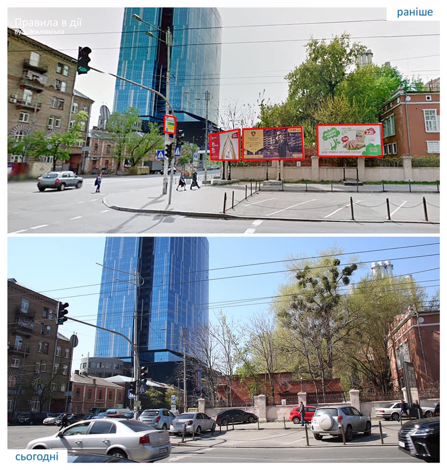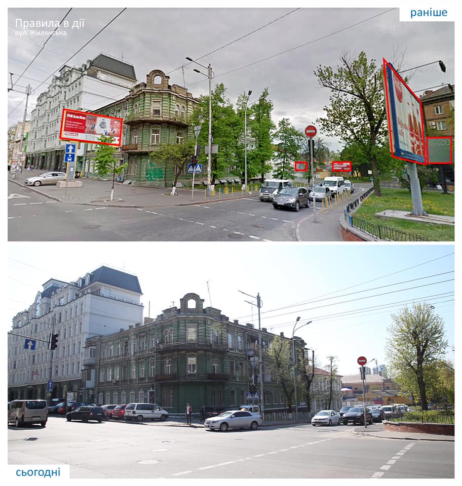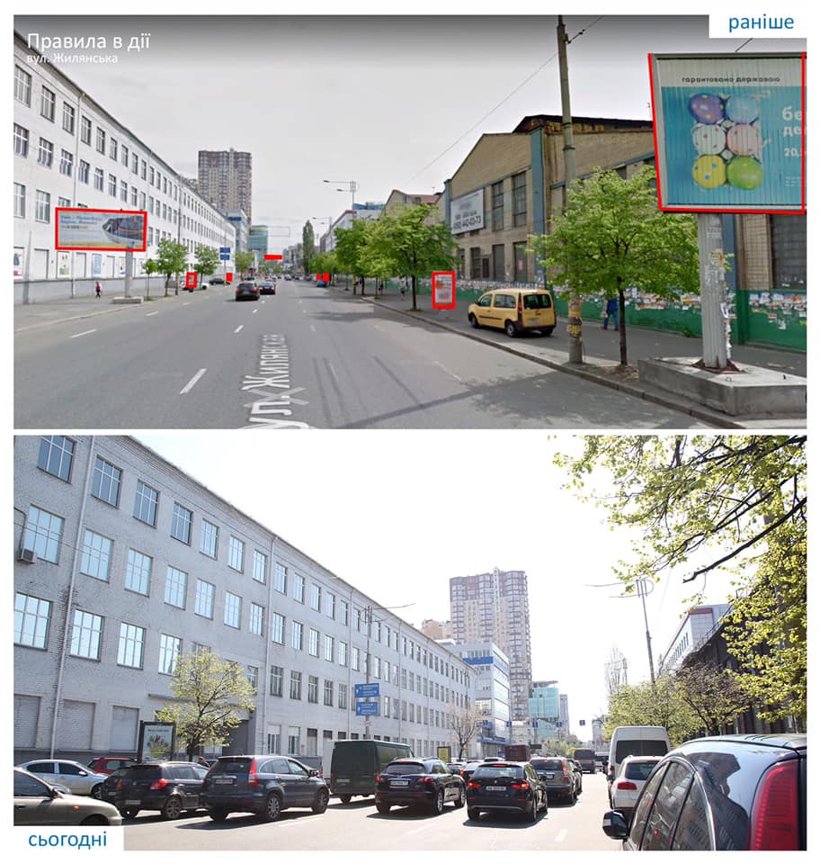 По его словам, ранее на Жилянской было установлено 112 рекламных конструкций, среди которых 53 щита и 59 ситилайтов общей площадью 1929 кв. м. На сегодняшний день число рекламных конструкций на этой улице удалось сократить до 47, общая площадь которых составляет 215,4 кв. м.