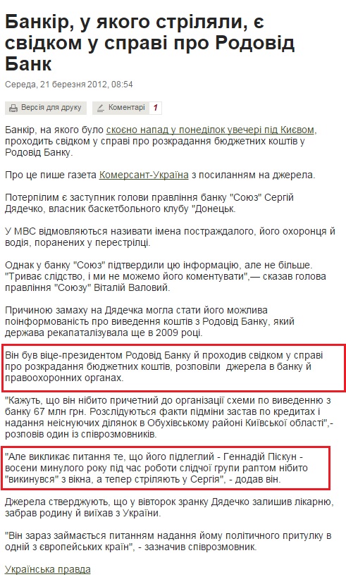 Данилів (він же Бечварж) тоді проходив у справі як можливий організатор замаху на вбивство колишнього мажоритарного акціонера банку "Родовід" Сергія Дядечка, що мав місце навесні 2012 року. "Українська правда" неодноразово писала про цю справу.