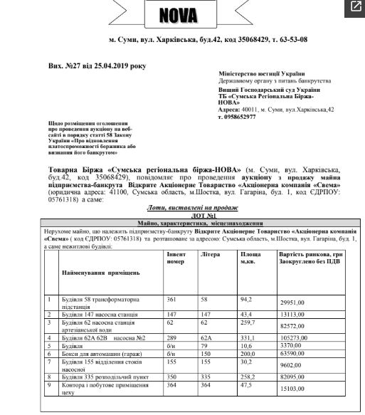 Теги: ИмуществопродажаАукционШосткаЗавод Свема