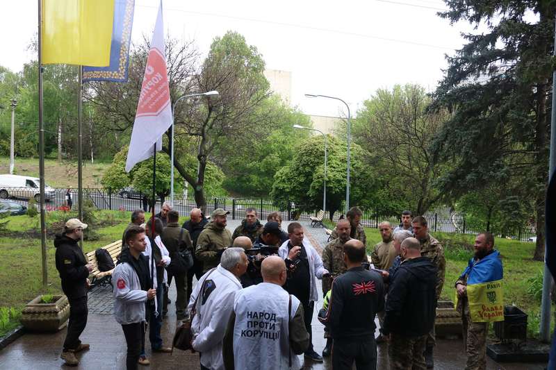 До активістів вийшов представник комісії, якому вони передали заяву про дискваліфікацію Коваленка.