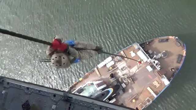В рамках учений VBSS (visit, board, search and seizure) бойцы провели высадку на корабль с воздуха и с моря несколькими группами.