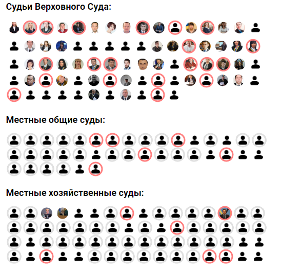 За 24 дня Петр Порошенко подписал указы о назначении 86 судей. Также он подписал 42 указа о кадровых назначениях — увольнение, назначение и награждение. Всего 188 человек получили должности, из них 94% — судьи.