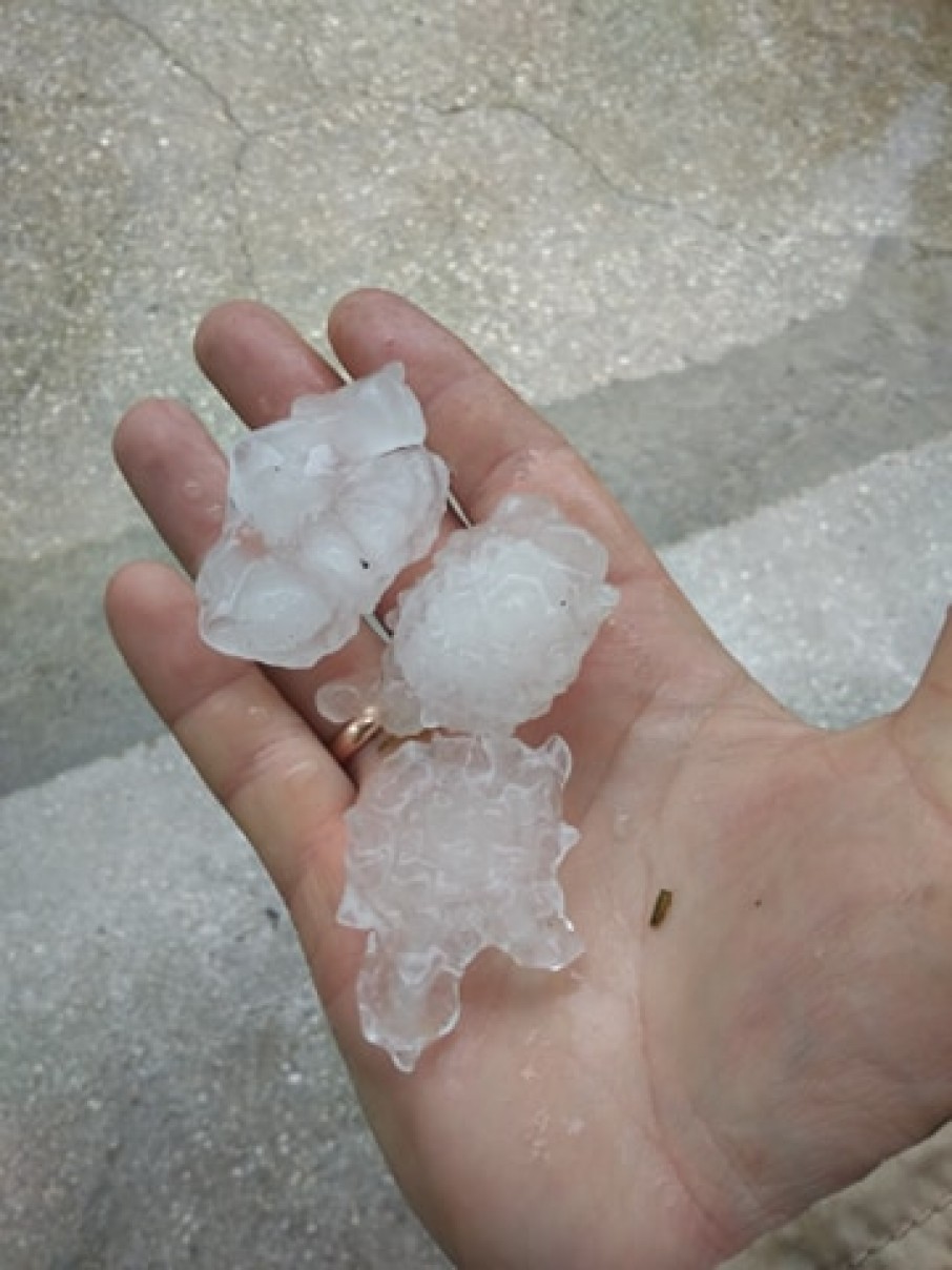 Затоплено й сусідні села. У с. Печеніги Івано-Франківської області, окрім сильної зливи і грози випав град велетенських розмірів.