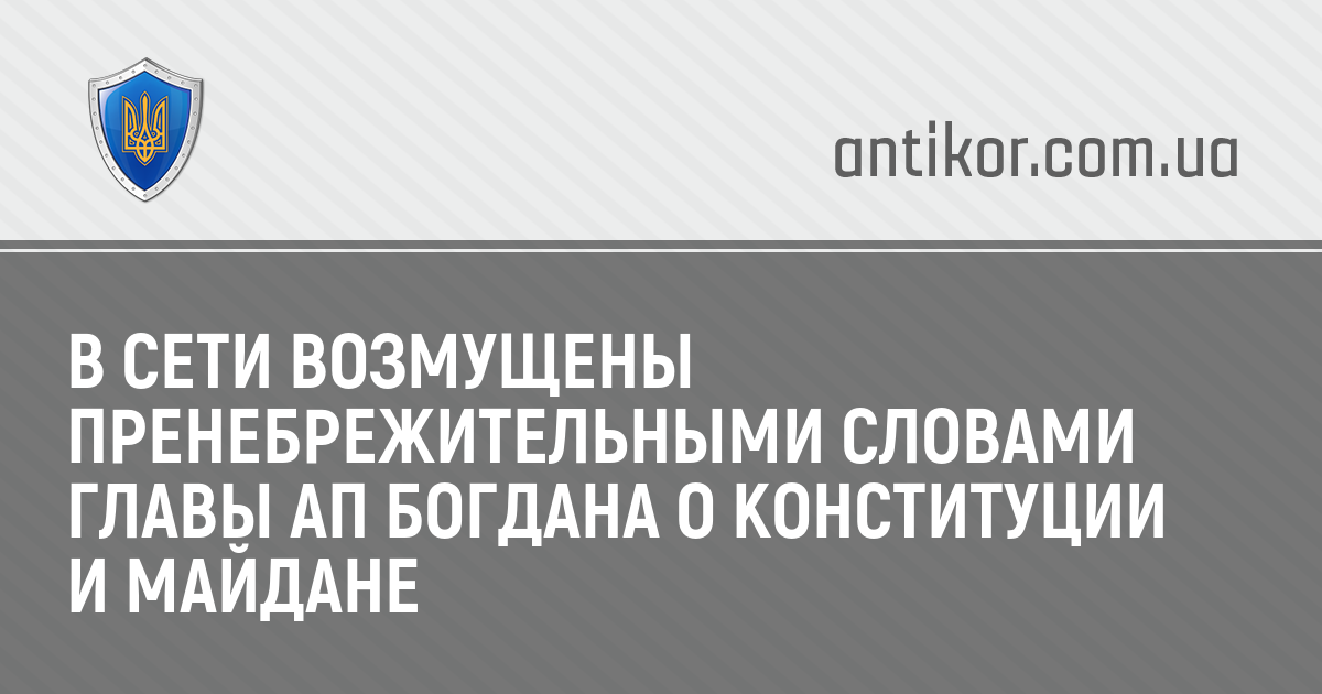 Пользователи социальных сетей возмутились из-за неуважительных высказываний главы Администрации президента Андрея Богдана в отношении Конституции Украины и Майдана. Гневные публикации распространяются, в частности, в Facebook.