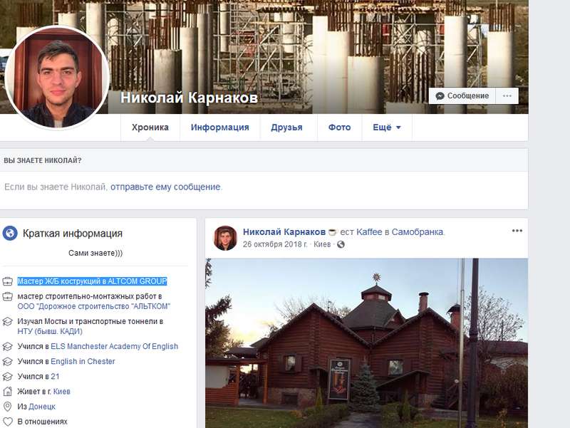 По бумагам владельцем «Укртрансмоста» числится 30-летний Николай Карнаков, переехавший несколько лет назад из Донецка в Киев. На своей странице в Facebook он честно указывает, что работает в компании «Дорожное строительство «Альтком» мастером строительно-монтажных работ.