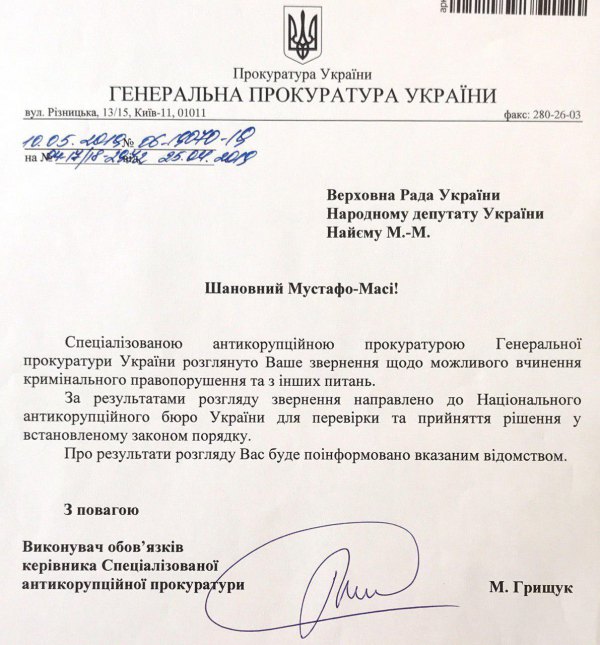 В прошлом месяце мы вместе с Игорем Черным обратились с этими фактами к главе Специализированной антикоррупционной прокуратуры Назару Холодницкому с просьбой инициировать соответствующее уголовное производство и проверить предоставленные материалы.